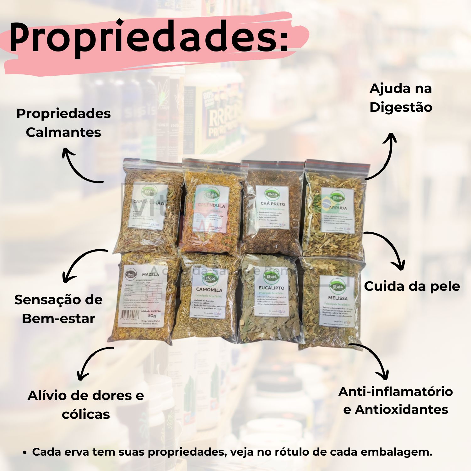 Aproveite agora todos os benefícios calmantes, revigorantes, energéticos dos chás e ervas naturais Efatá Saúde Natural.